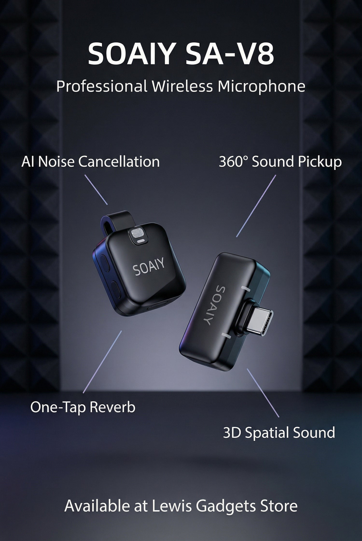 Soaiy V8 Wireless GO II: Ultra-Compact Dual-Channel Microphone System for Filmmaking, Interviews & Content Creation with Built-In Recording and 200M Range